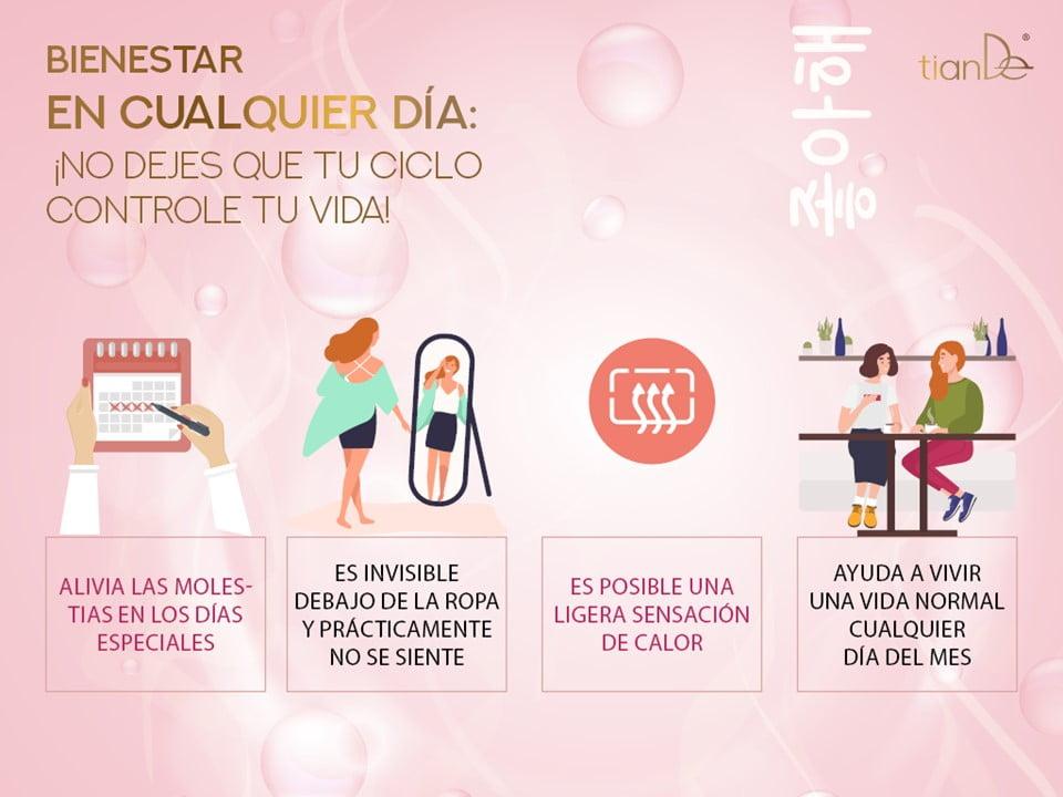 – proporciona un ligera sensación de calor, le ayuda a vivir una vida normal cualquier día del mes.