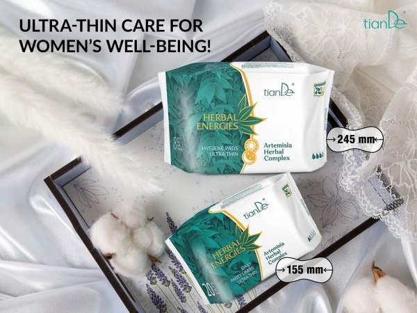 Los protectores diarios ultrafinos del complejo de hierbas Artemisia tienen un efecto beneficioso sobre el organismo femenino y mantienen un nivel de pH respetuoso con la piel.